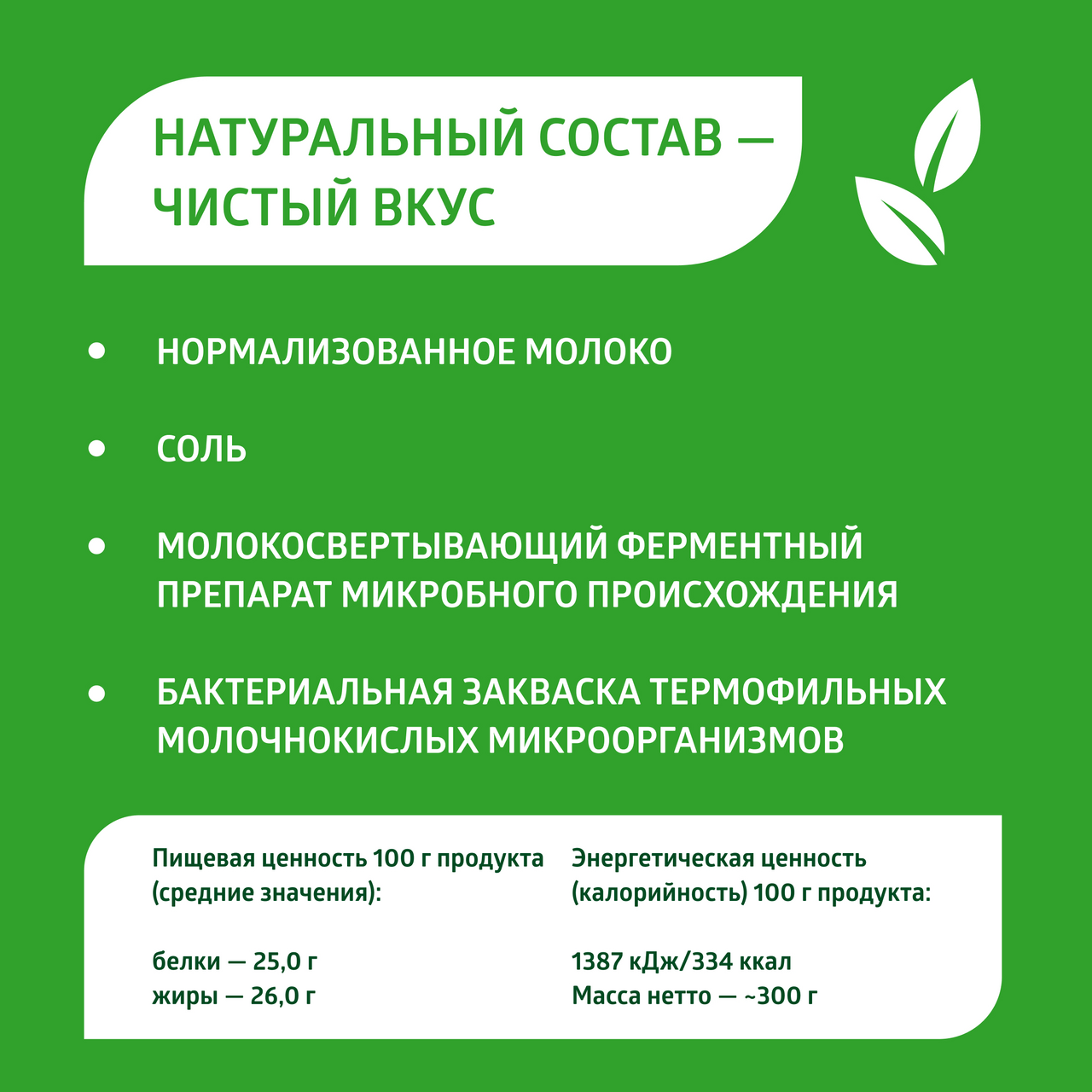 Молоко нормализованное, соль, уплотнитель хлорид кальция, молокосвертывающий ферментный препарат животного происхождения, бактериальная закваска термофильных молочнокислых микроорганизмов.
