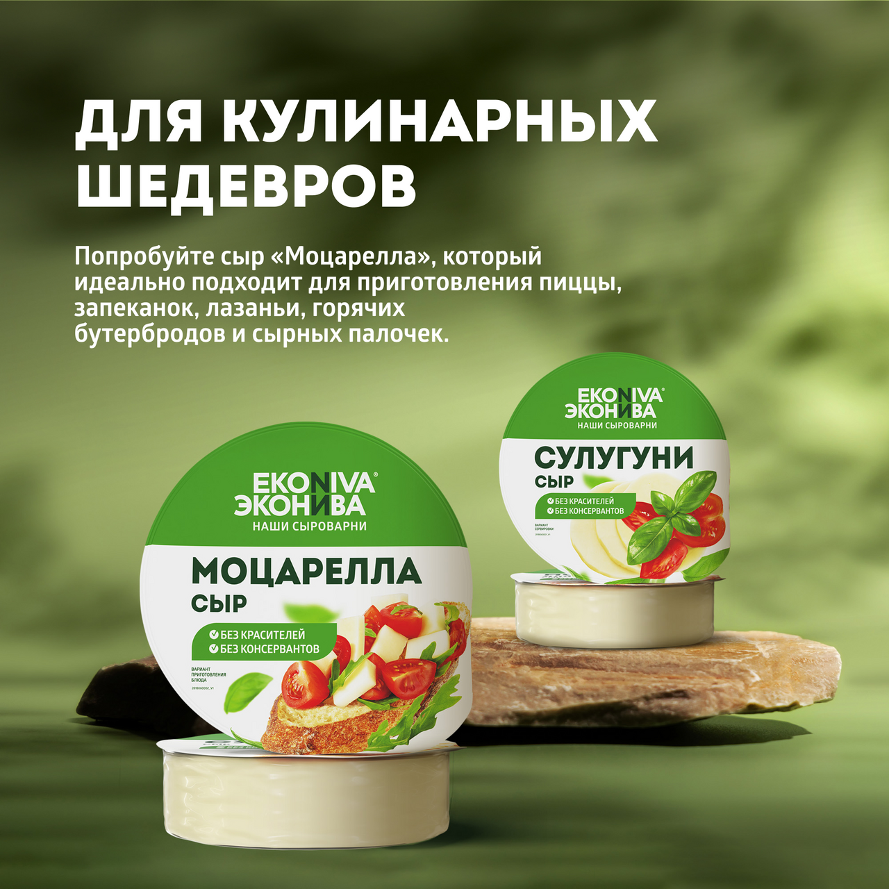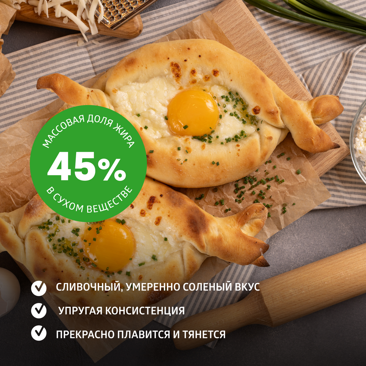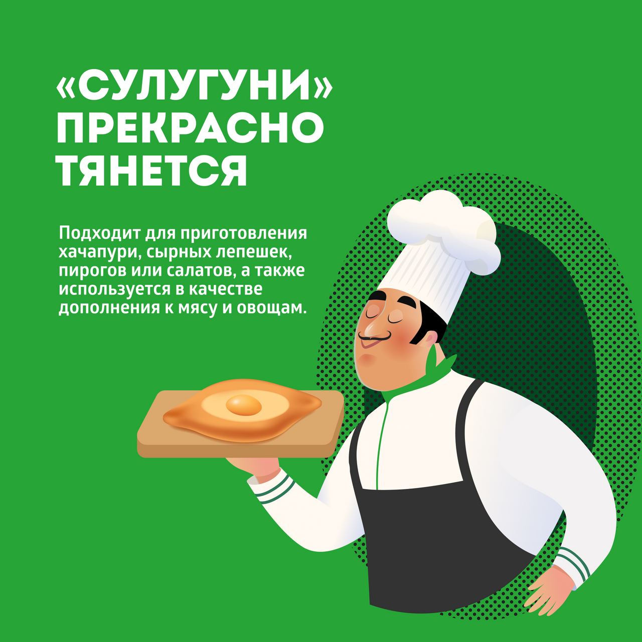 Полутвердый сыр Сулугуни мы производим в лучших традициях сыроварения. Племенные коровы едят питательный корм из сельскохозяйственных культур, выращенных на собственных полях ЭкоНивы, и радуют нас большими надоями молока. Из него мы создаем сыр Сулугуни без красителей и консервантов. Он обладает нежным сливочным вкусом, умеренно соленый. Имеет упругую консистенцию и однородную текстуру без глазков. Применение: используется как для самостоятельного употребления, так и для приготовления бутербродов или в качестве дополнения к мясу, овощам.