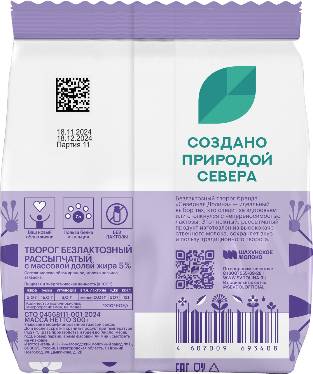 Творог Северная долина безлактозный 5%, 300г