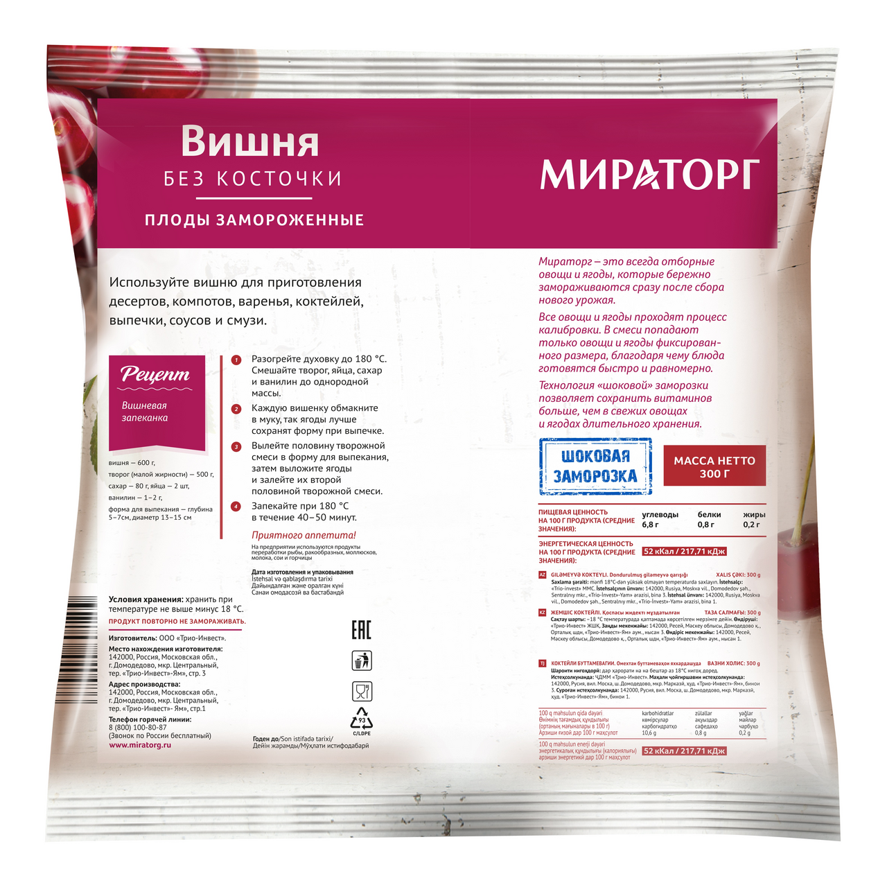 Вишня без косточки – сочная, яркая и универсальная ягода. Она идеально гармонирует с мороженым и йогуртами. С вишней вареники, пироги и штрудели приобретают изумительный вкус, а каши и сырники становятся трендовыми блюдами ресторанного уровня. Эта ягода богата витаминами A, B и C, а также железом, цинком и фосфором.