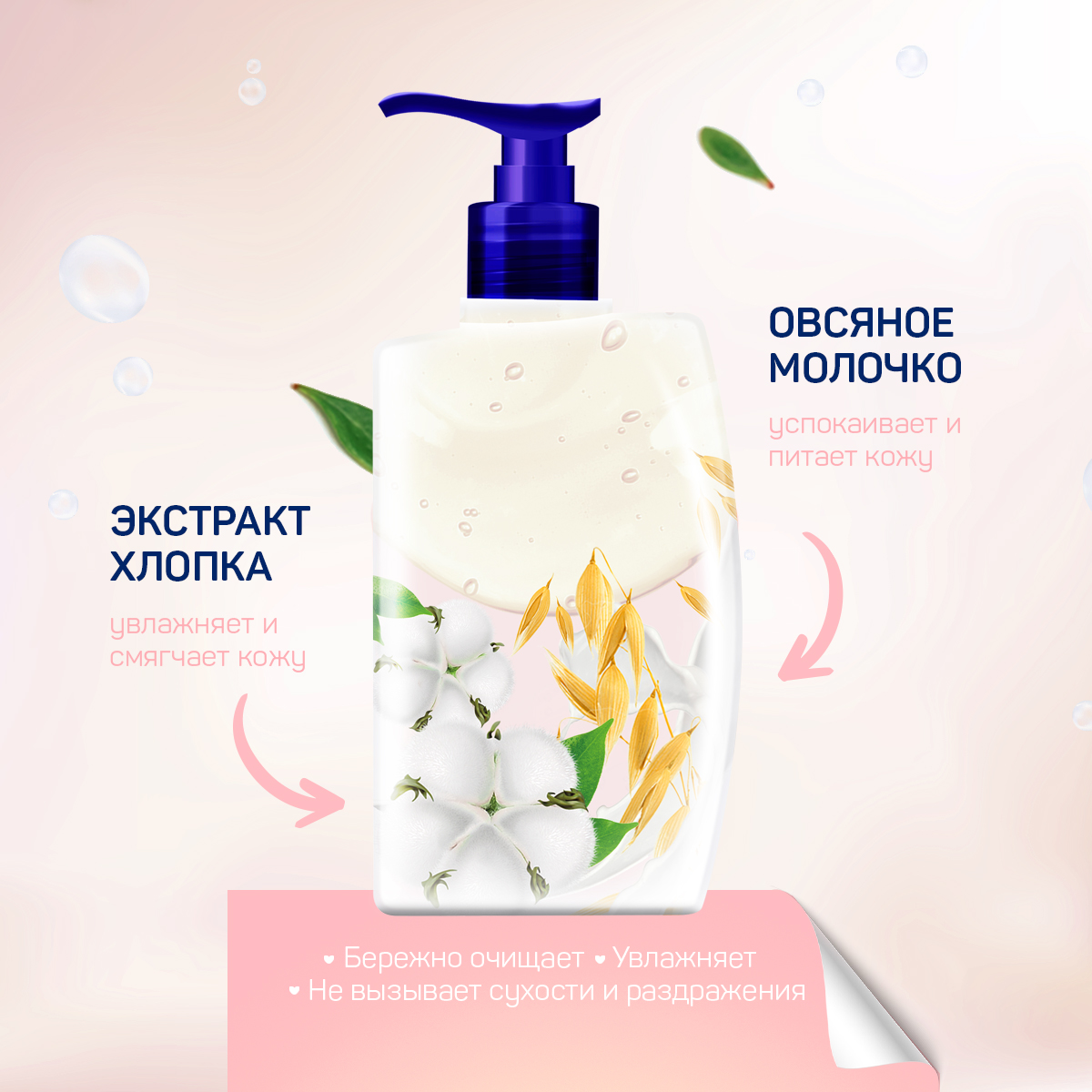 Нежная текстура крем-мыла Aura Pure Cotton бережно очищает кожу рук и тела, не вызывая сухости и раздражения. Натуральные компоненты и экстракты, входящие в состав мыла, смягчают и тонизируют кожу, придают ей ощущение свежести и комфорта. Овсяное молочко интенсивно питает и успокаивает кожу, придавая ей невероятное ощущение комфорта. Данное мыло превосходно подходит для очищения кожи рук и тела. Удобный флакон с дозатором в нежном минималистичном дизайне отлично подойдет к дизайну любой ванной комнаты.