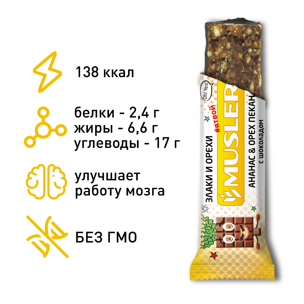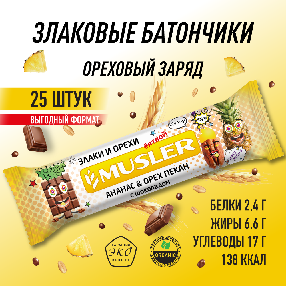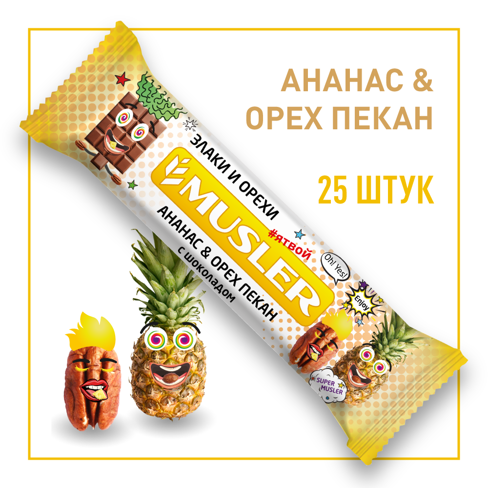 Батончик-мюсли Musler Ананас и орех пекан с шоколадом, 30г x 25 шт