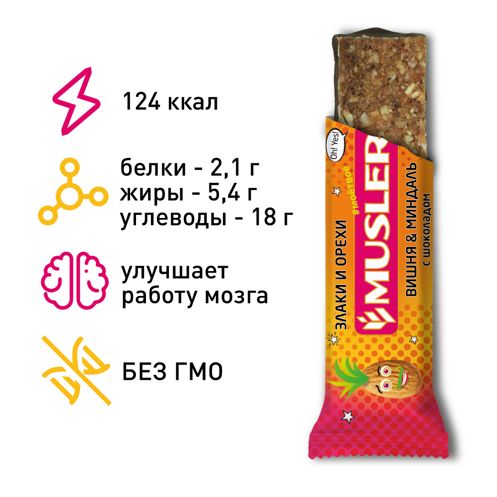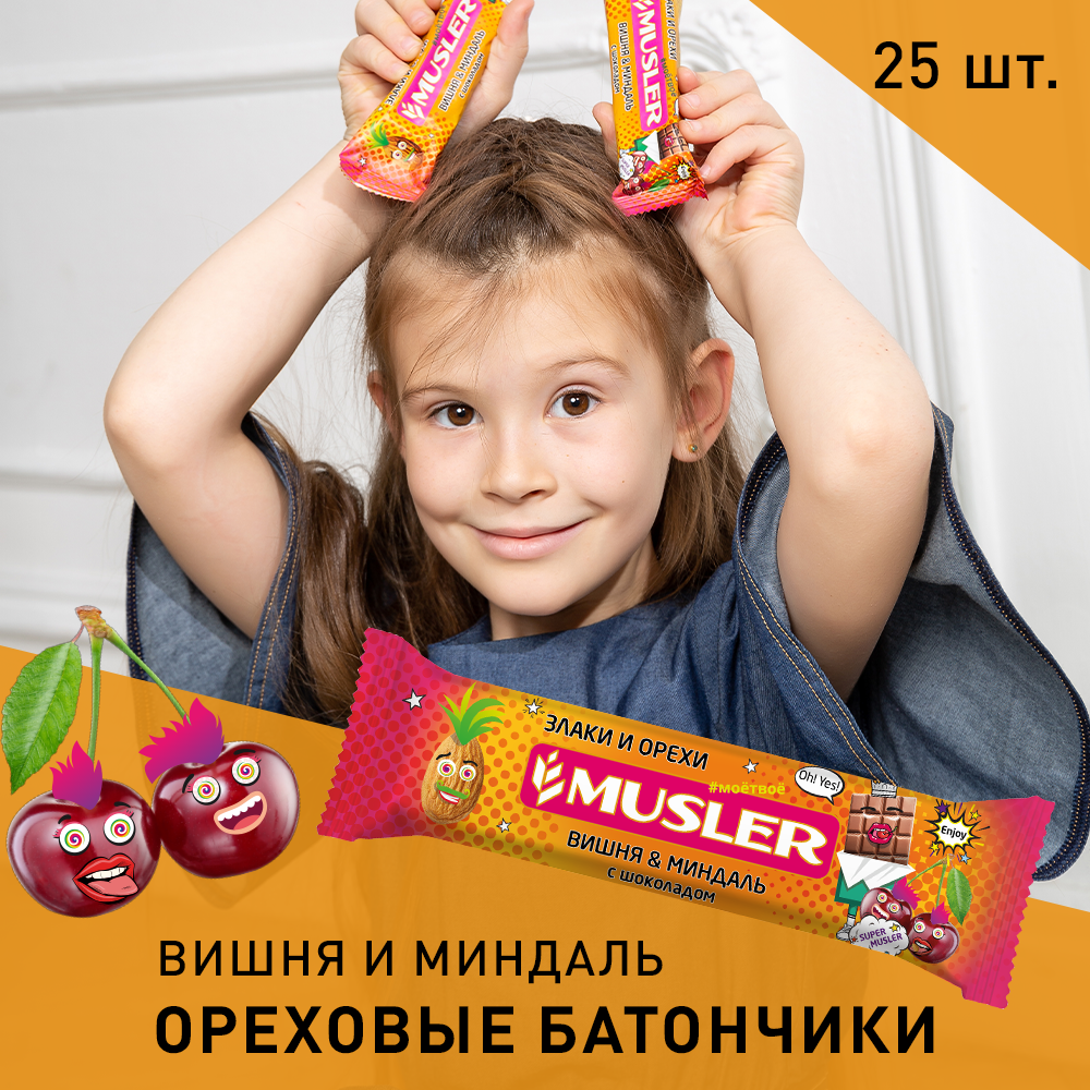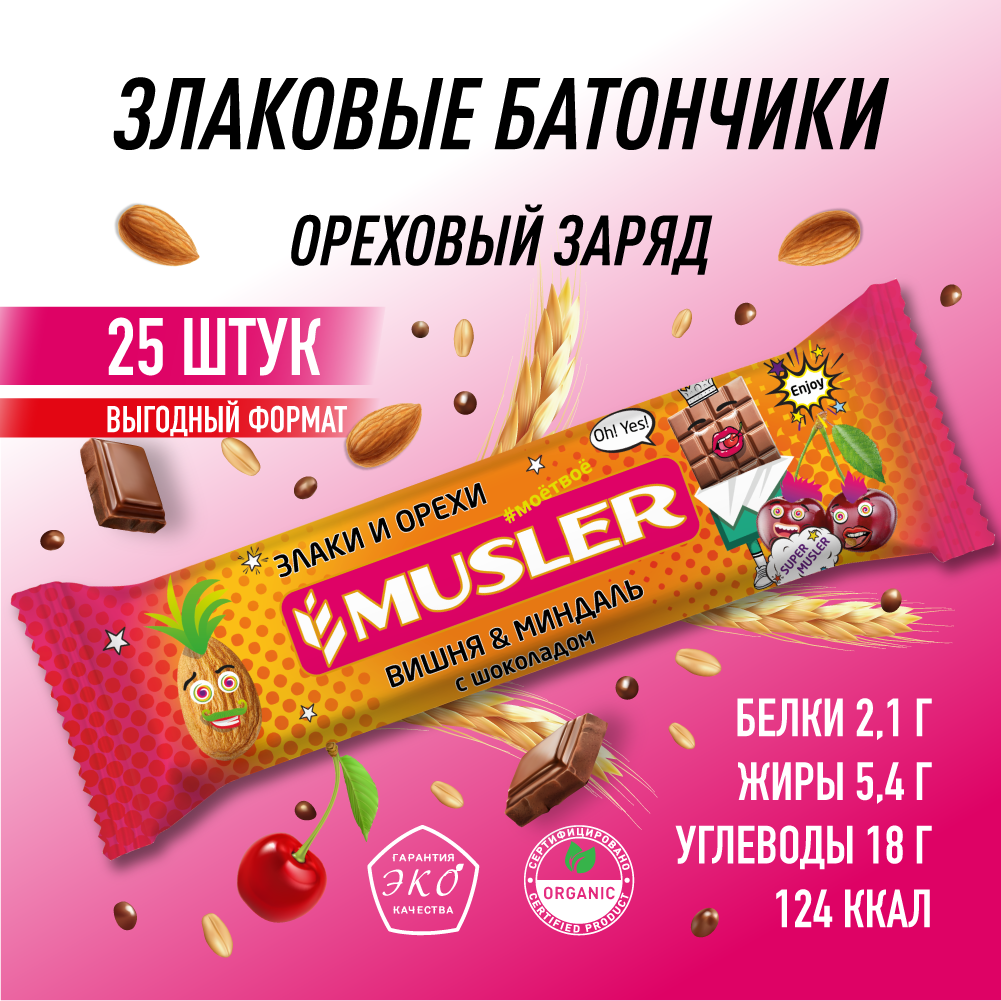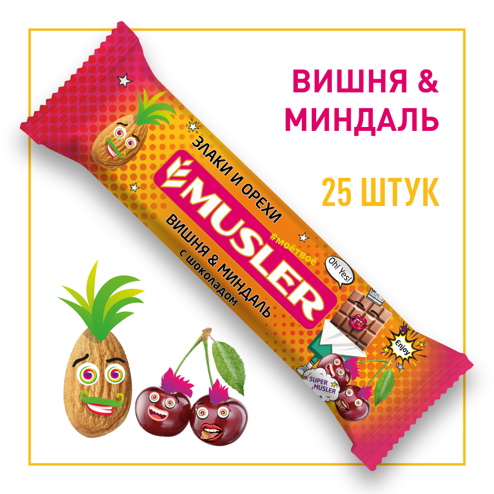 Батончик-мюсли Musler Вишня и миндаль с шоколадом, 30г x 25 шт