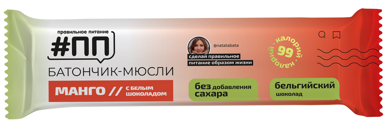 Батончик-мюсли ПП Манго-белый шоколад без сахара, 30г х 24 шт