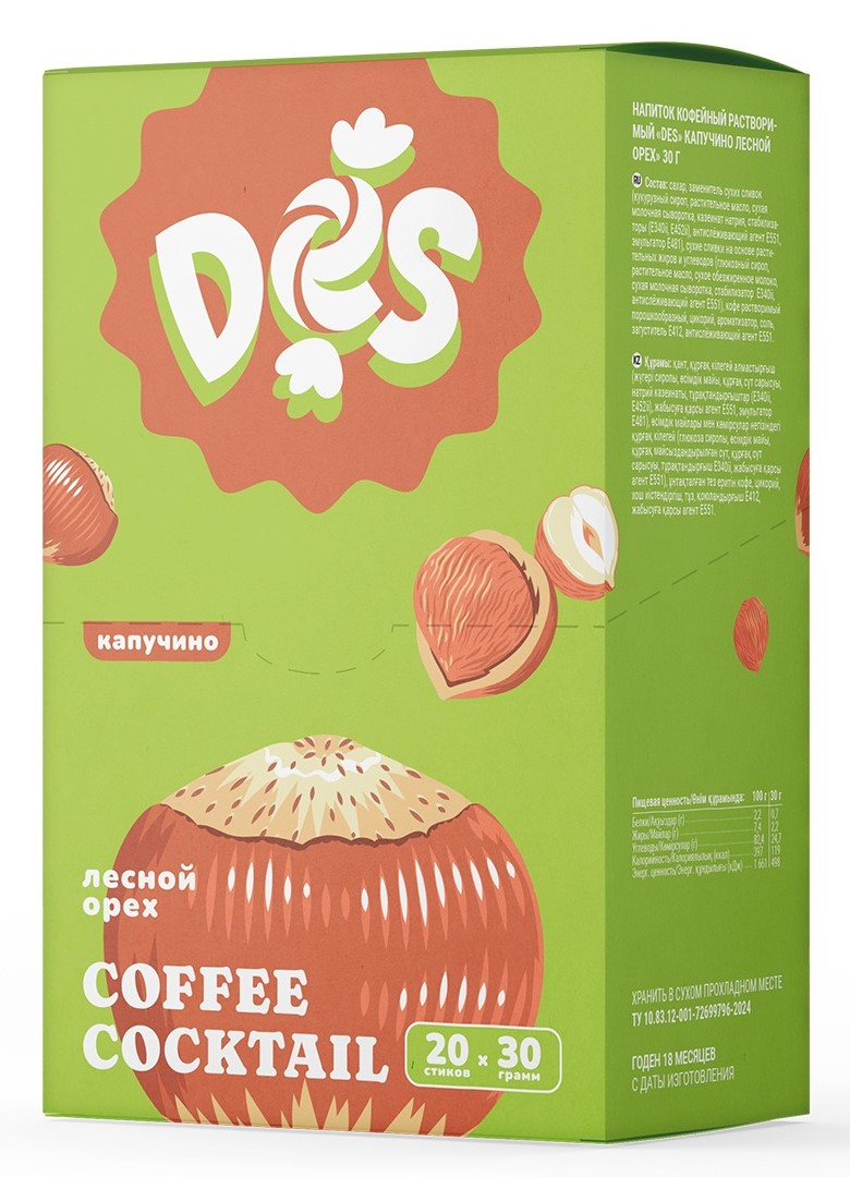 Напиток кофейный Des Капучино лесной орех растворимый, 30г