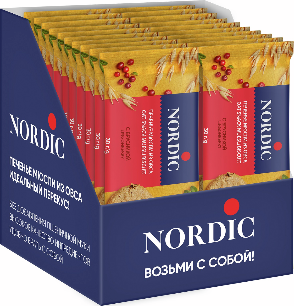Печенье злаковое Nordic Мюсли из овса с брусникой, 30г