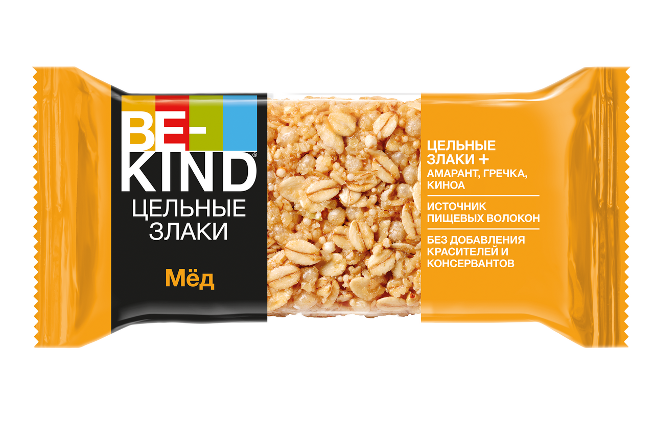 Злаковый батончик Be-Kind Мед не просто обладает приятным сладким вкусом с медово-кокосовыми нотками. Это настоящий кладезь полезных веществ — в его составе цельные злаки, от привычных гречки и пшена до амаранта и киноа, относящихся к суперфудам. Витамины, минералы, пищевые волокна — продукт прекрасно утоляет чувство голода. Это здоровая альтернатива привычным сладостям и удобный формат перекуса в пути, на прогулке, работе или учебе. Не содержит глютен.