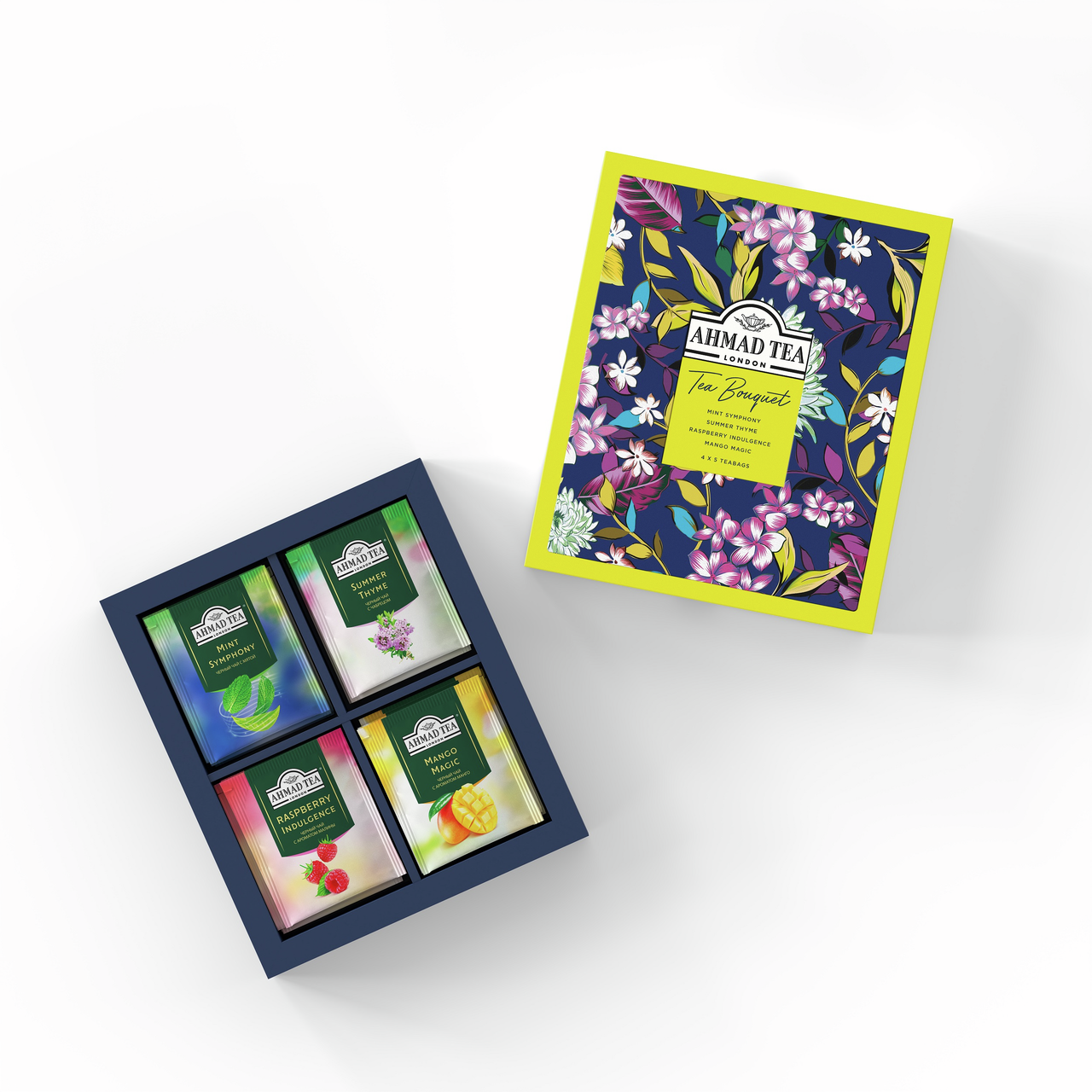 Чайное ассорти Tea Bouque - лучший подарок каждому чайному гурману. Порадуйте близких, пригласите гостей или сделайте теплый комплимент коллегам, чайное ассорти идеально подойдет для любого повода. Подарите праздник и наслаждайтесь чаепитием, а Ahmad Tea сделает это мгновение особенным.