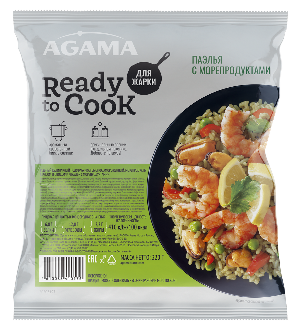 Паэлья Agama с морепродуктами замороженная, 320г