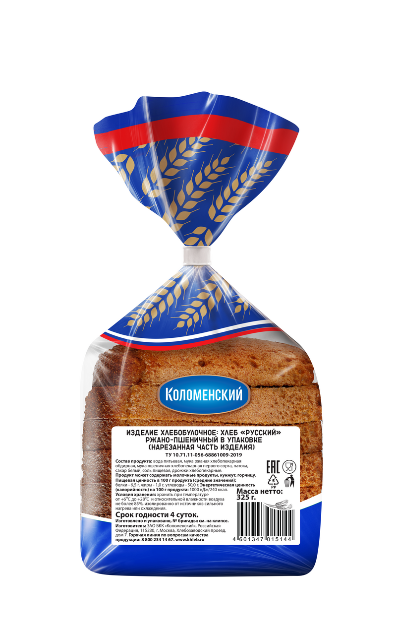 Хлеб Коломенский Русский ржано-пшеничный нарезка, 325г