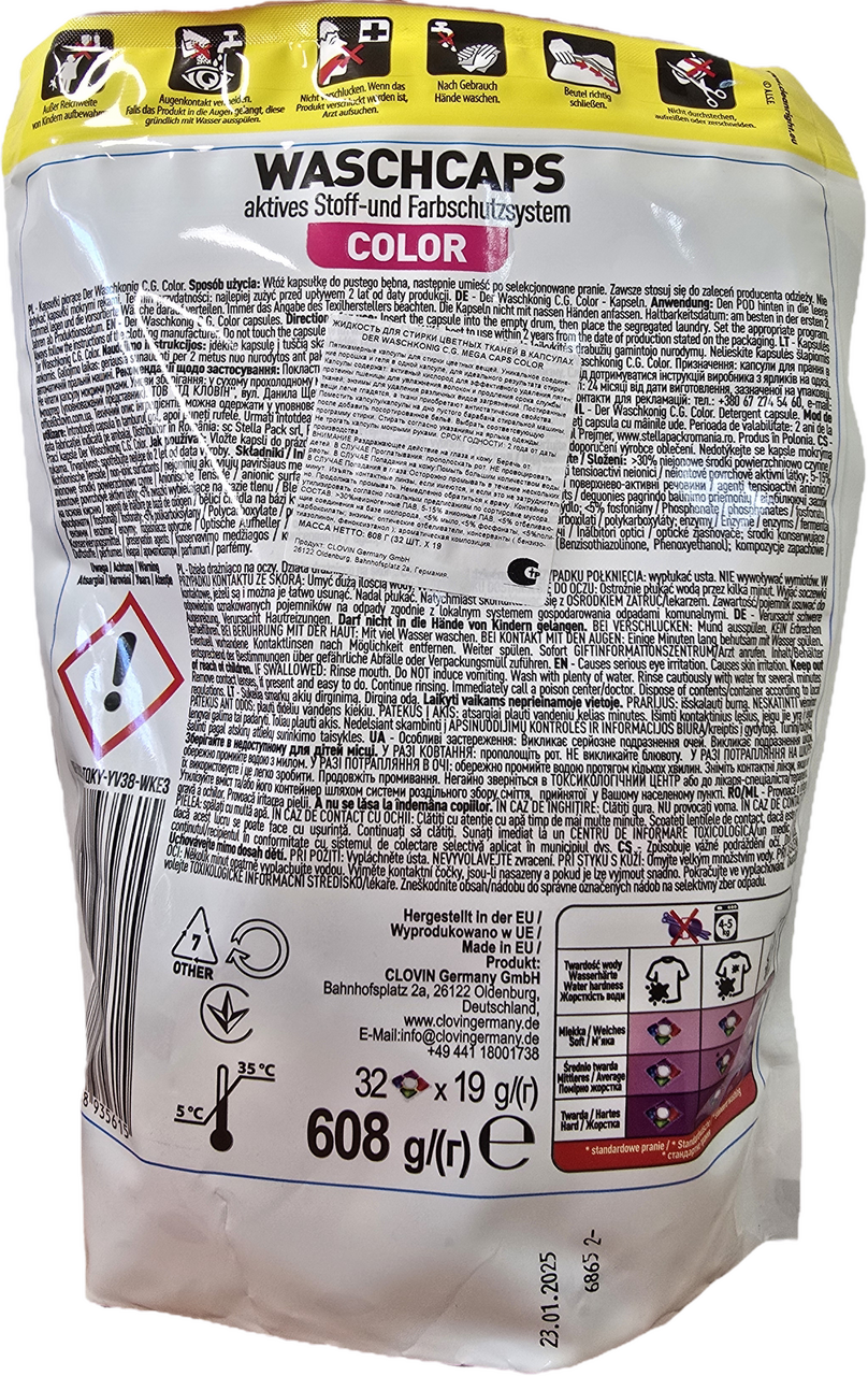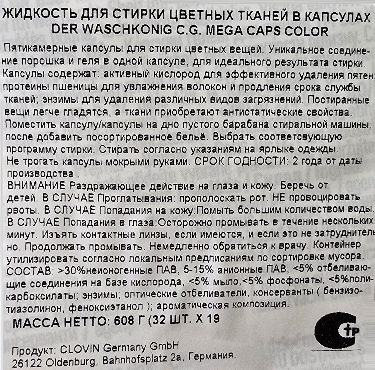 Капсулы для стирки Waschkonig Mega Color (19г x 32шт), 608г