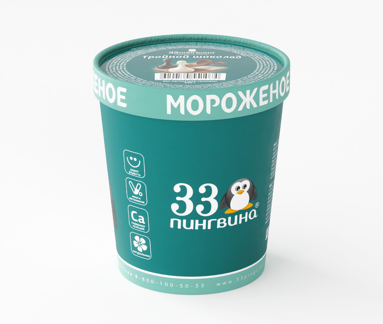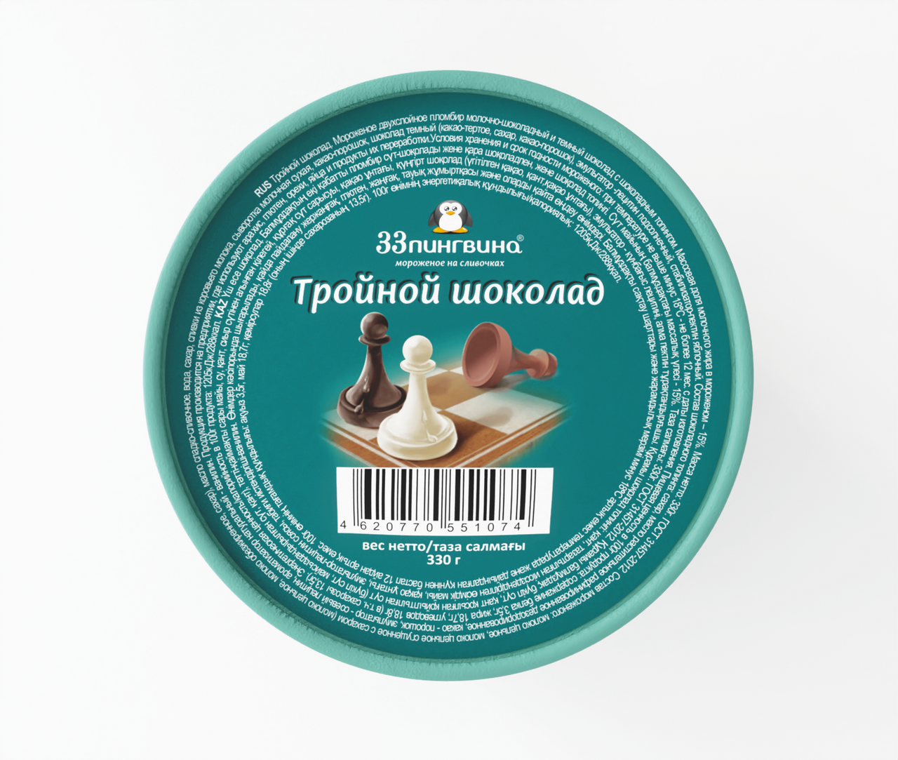 Мороженое пломбир 33 Пингвина Тройной шоколад, 330г