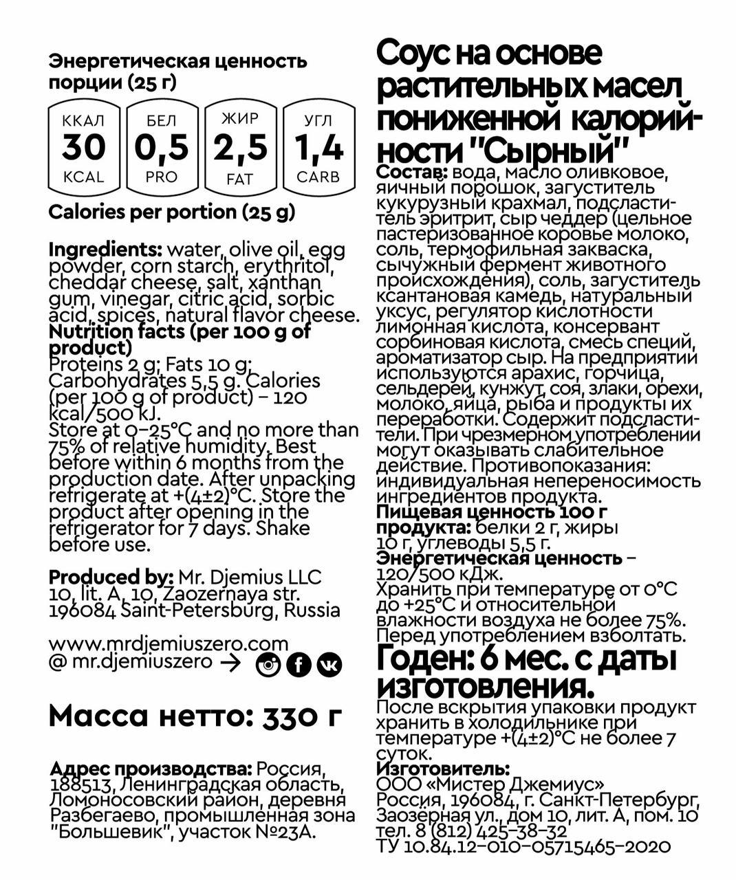 Соус Mr. Djemius Zero Сырный пониженной калорийности без сахара, 330г