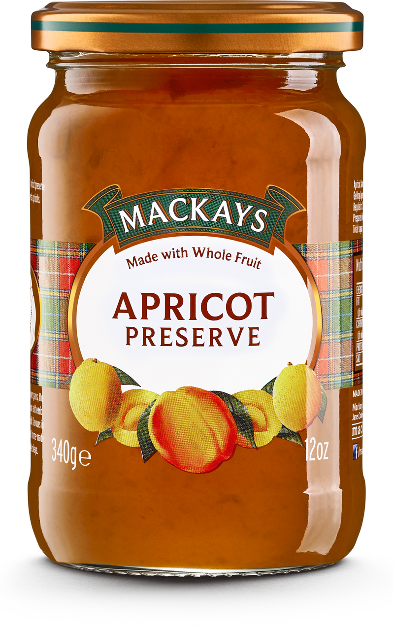 Традиционный джем приготовленный из цельных абрикосов.Джем Mackays сварен по старинке в открытых медных котлах.