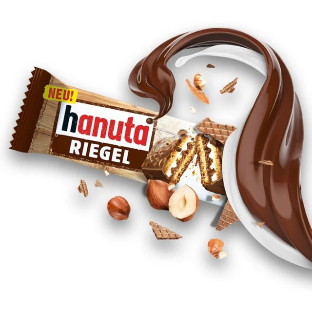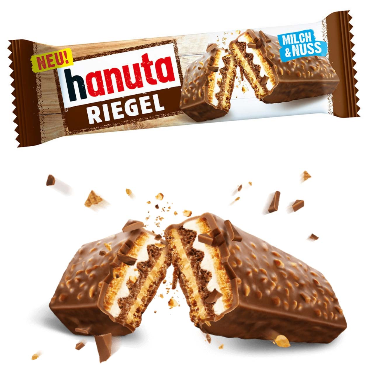 Вафли Hanuta Riegel Ferrero представляют собой изысканное угощение, созданное компанией Ferrero. Эти вафли сочетают в себе хрустящую вафлю и нежную начинку из арахисового крема, покрытую тонким слоем шоколада. Хрустящее лакомство из трех вафельных ломтиков, прослоенных двумя видами начинки - молочной и ореховой. Десерт покрыт нежным молочным шоколадом. Каждое изделие завернуто в индивидуальную обертку. Благодаря упаковке, вафли можно взять с собой на прогулку или в путешествие, чтобы утолить голод в любой момент.