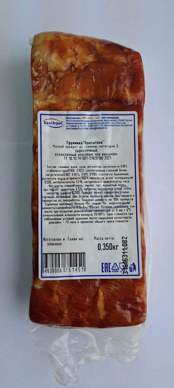 Грудинка Балтагрос Ароматная сырокопченая, 350г