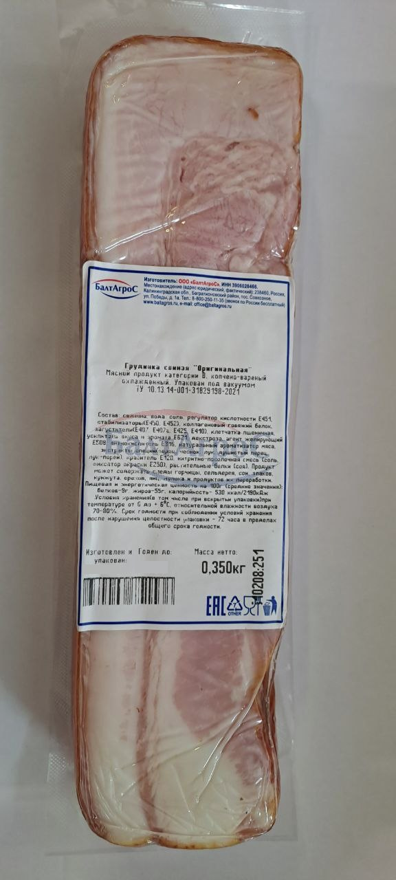 Грудинка свиная Балтагрос Оригинальная копчено-вареная, 350г