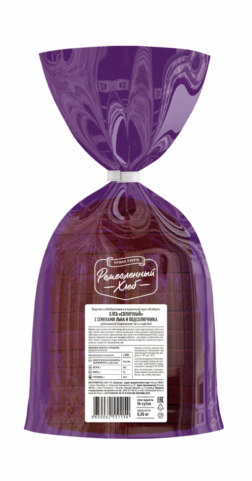 Хлеб Ремесленный хлеб солнечный с семенами льна и подсолнуха, 350г