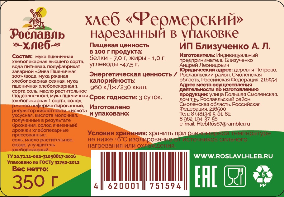 Хлеб Рославль фермерский, 350г