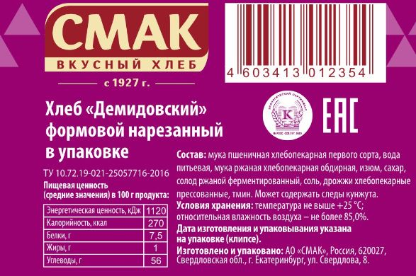 Хлеб Смак Демидовский нарезка, 350г