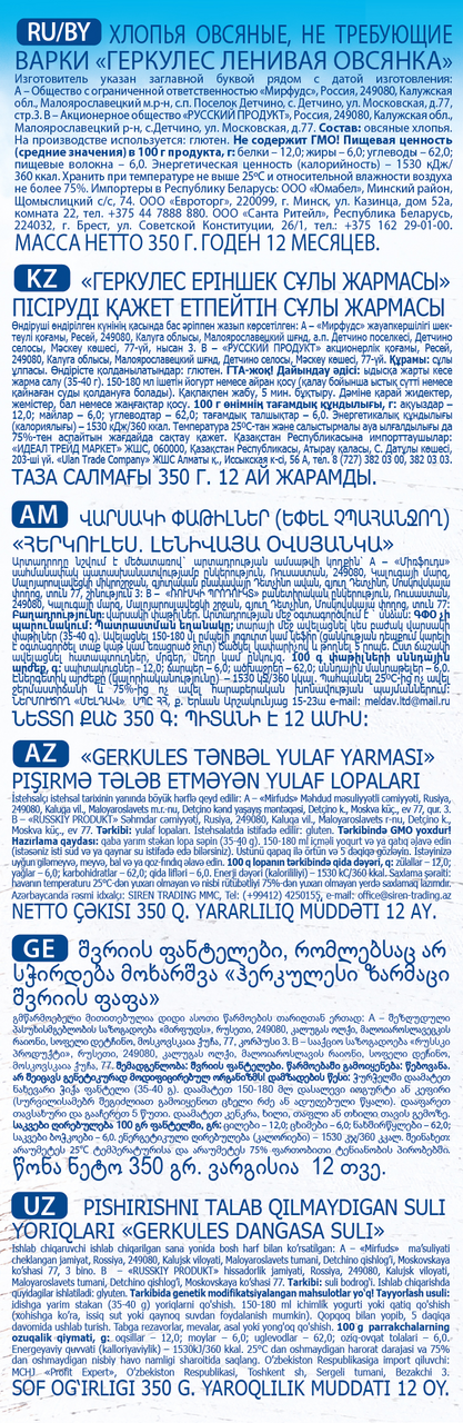 Хлопья Русский продукт геркулес ленивая овсянка, 350г