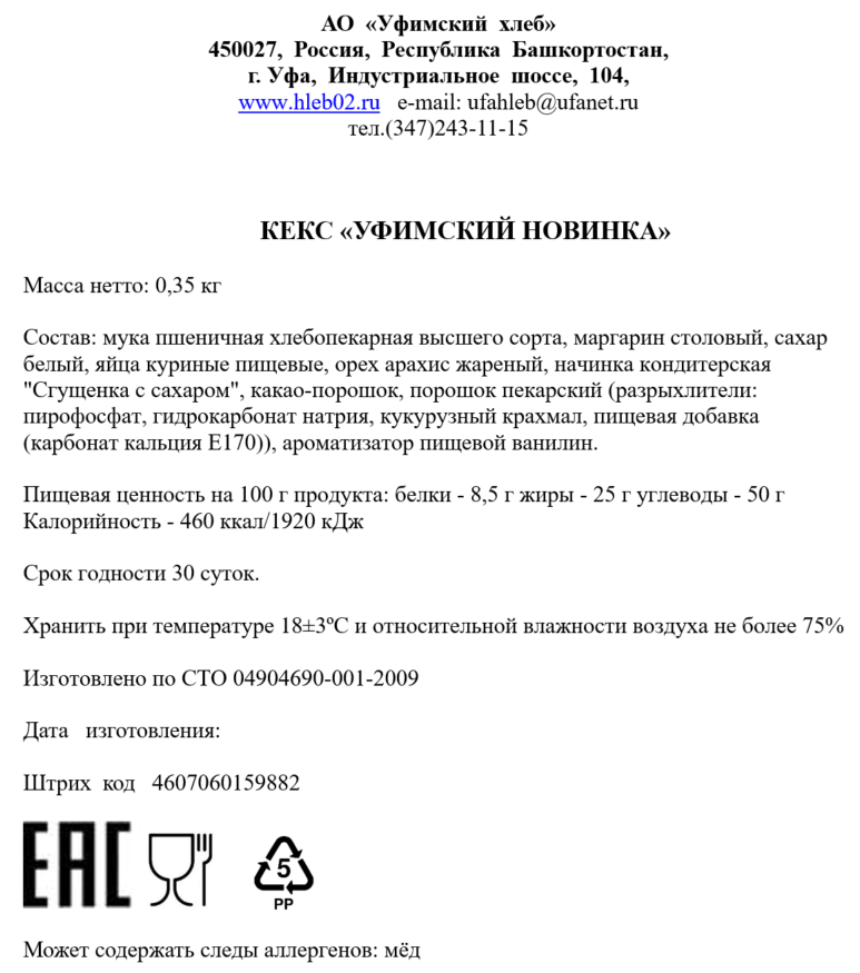 Кекс Уфимский хлеб новинка, 350г