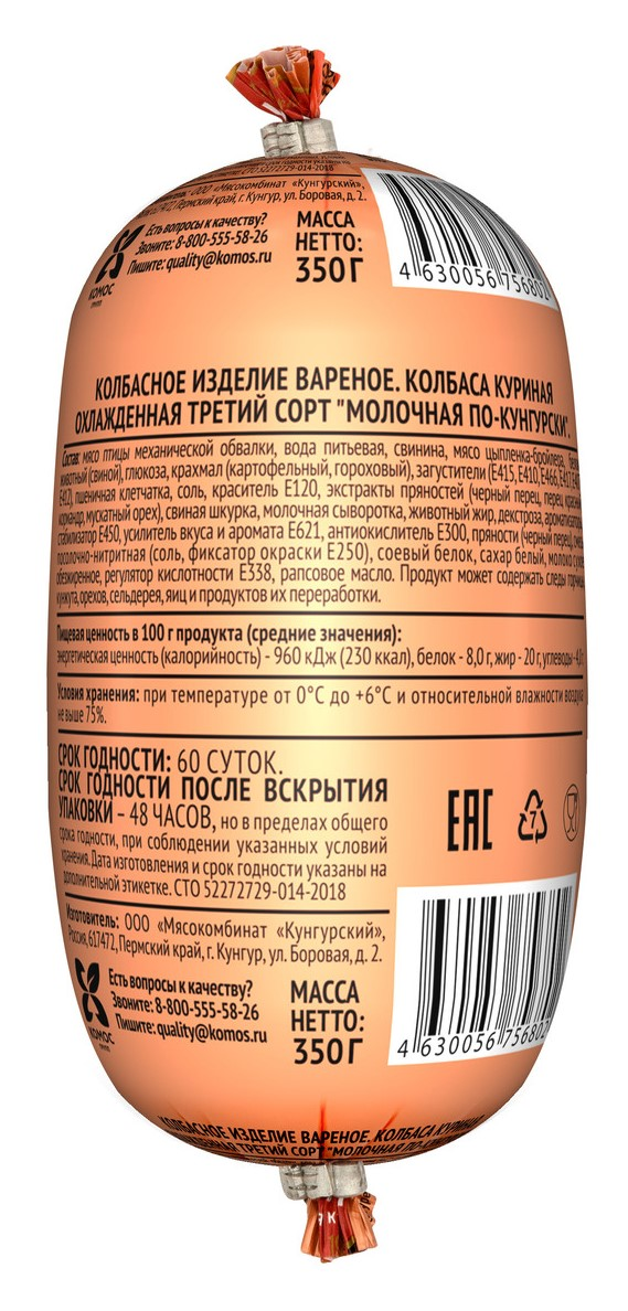 Колбаса Кунгурский МК По-Кунгурски молочная вареная, 350г