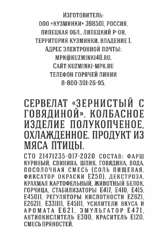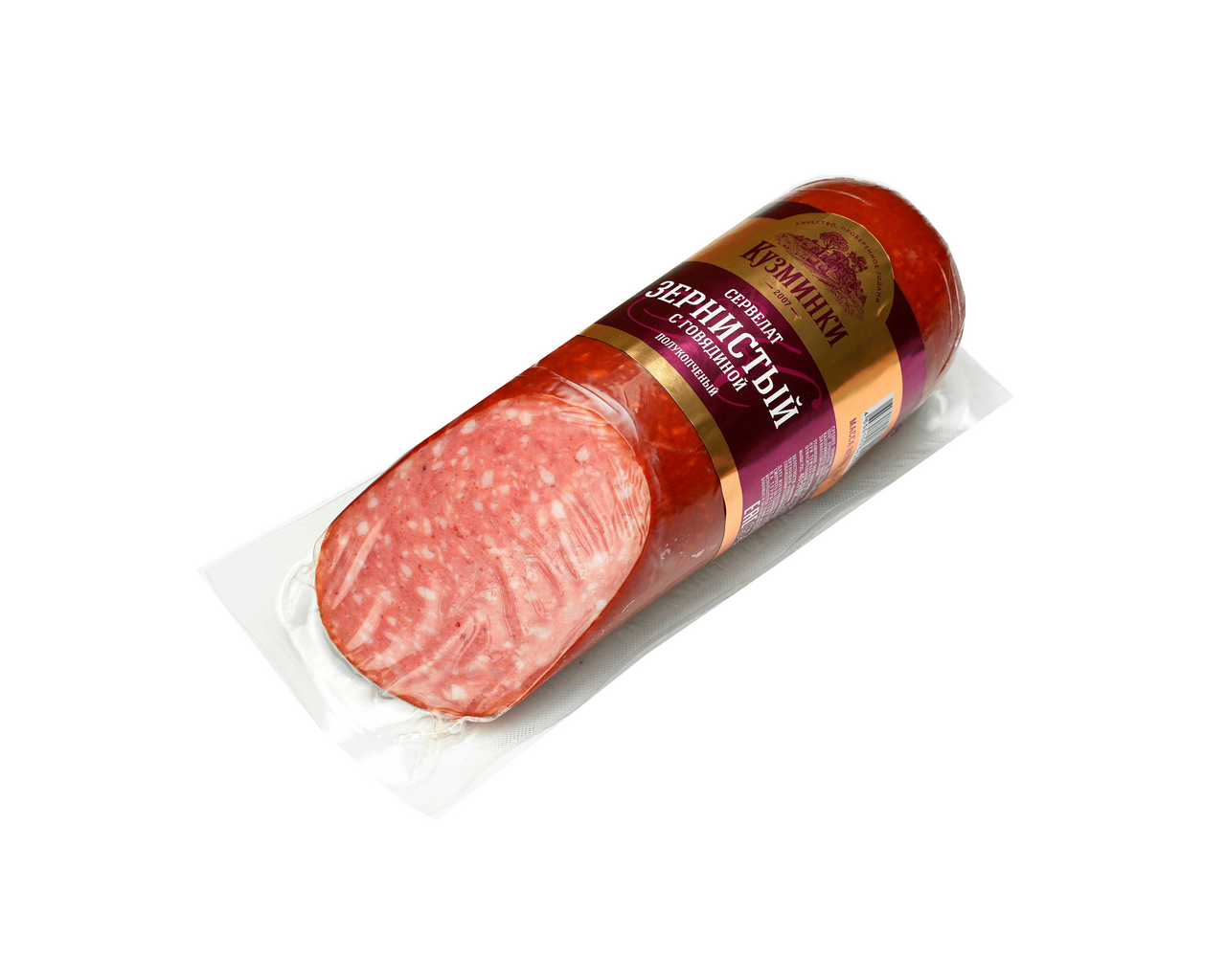 Колбаса Кузминки Сервелат зернистый с говядиной полукопченый, 350г