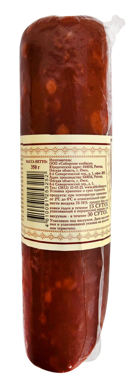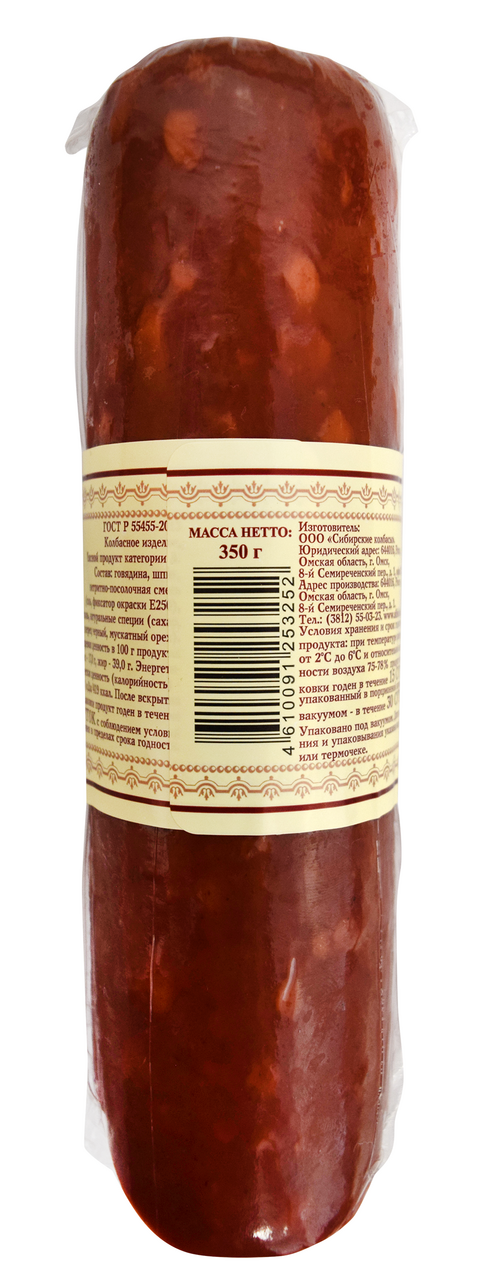 Классическая варено-копченая колбаса с крупным шпиком, изготовлена из мяса говядины по рецептуре ГОСТ. Идеальная как для бутербродов, так и для праздничных нарезок.