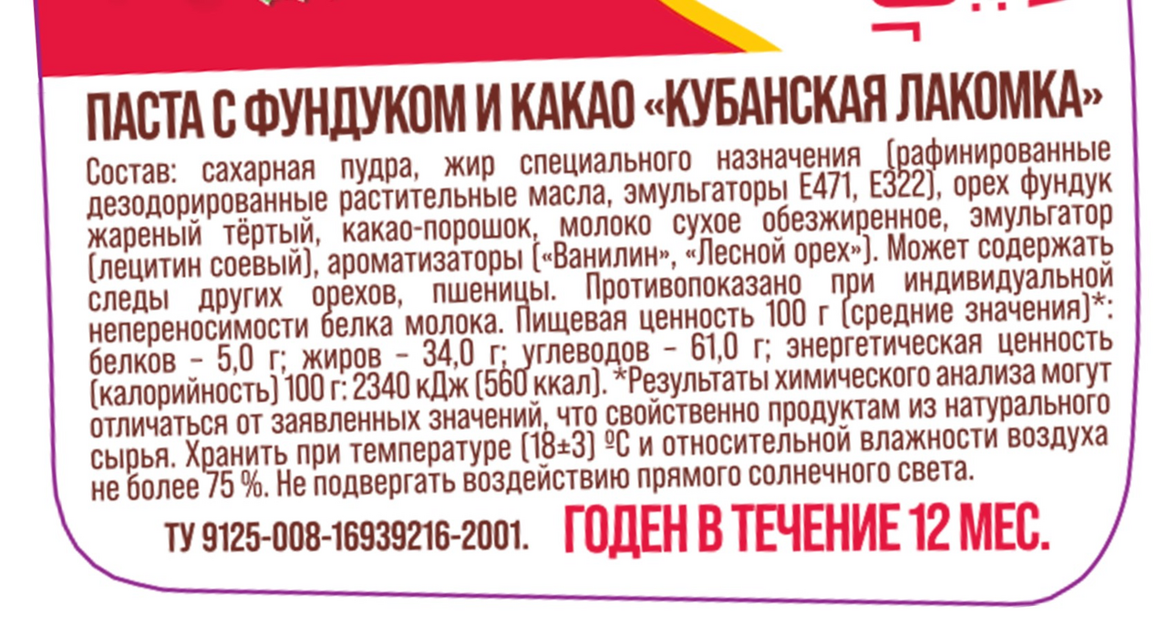 Паста Кондитерский Комбинат Кубань с фундуком и какао, 350г