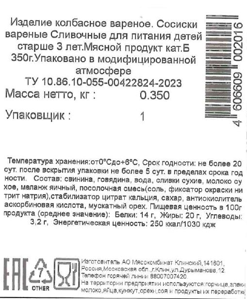 Сосиски Клинский Детям сливочные, 350г