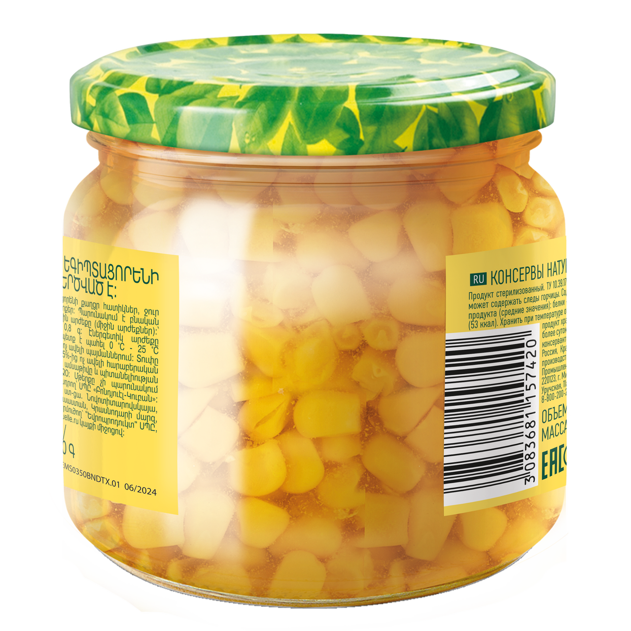 Кукуруза сладкая в зернах, вода питьевая, соль