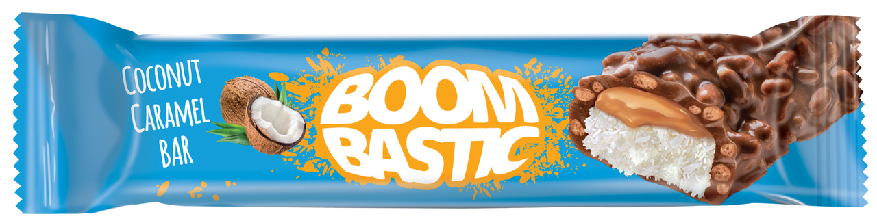 Батончик Boombastic в молочном шоколаде с кокосом, карамелью и хрустящим рисом, 35г х 12 шт