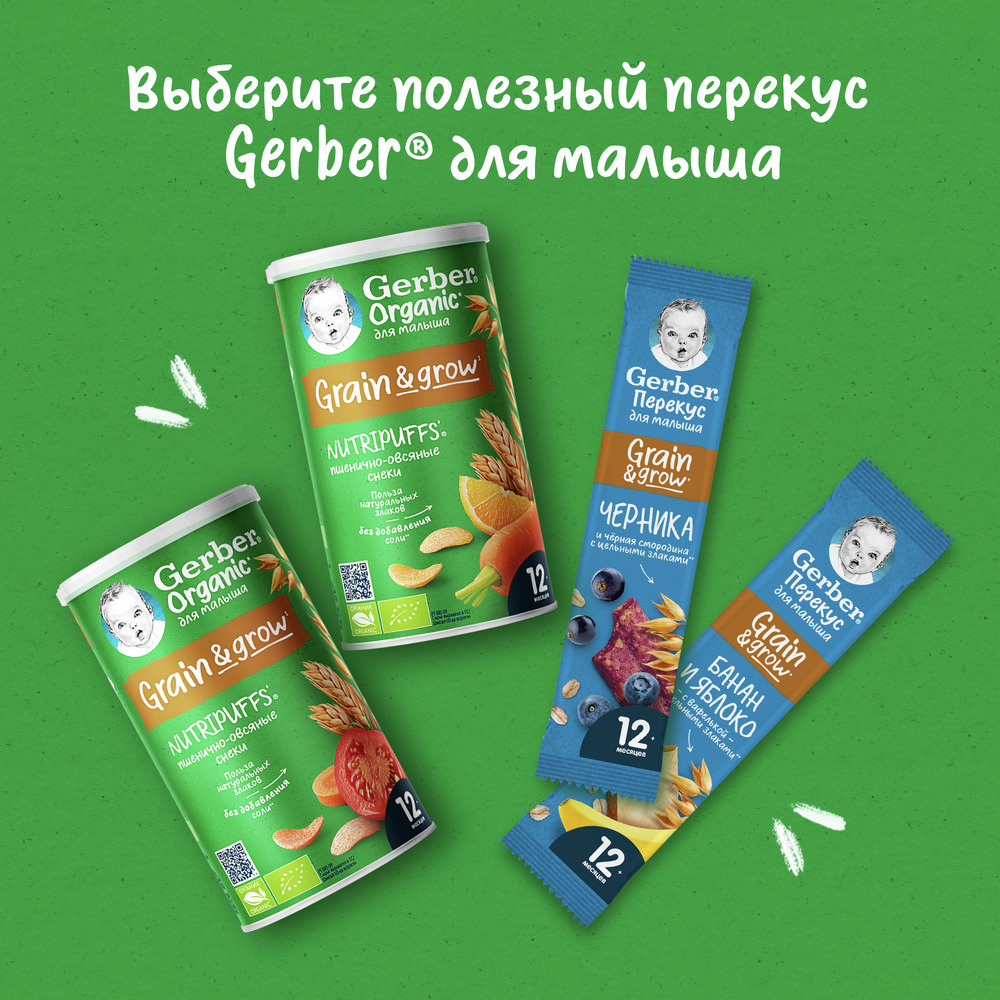 Снеки пшенично-овсяные детские Gerber Томат и морковь с 12 месяцев, 35г