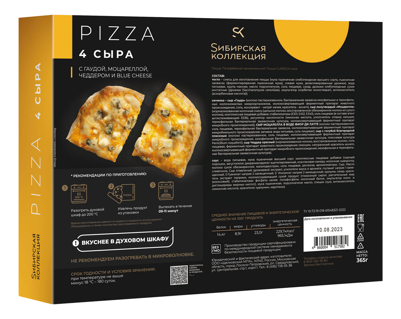 Пицца Сибирская коллекция 4 сыра замороженная, 365г