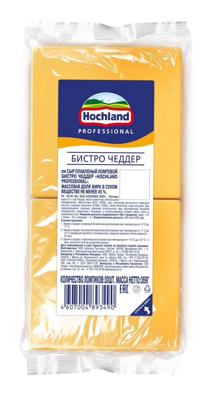 Сыр Hochland Professional Бистро Чеддер плавленый 45%, 369г