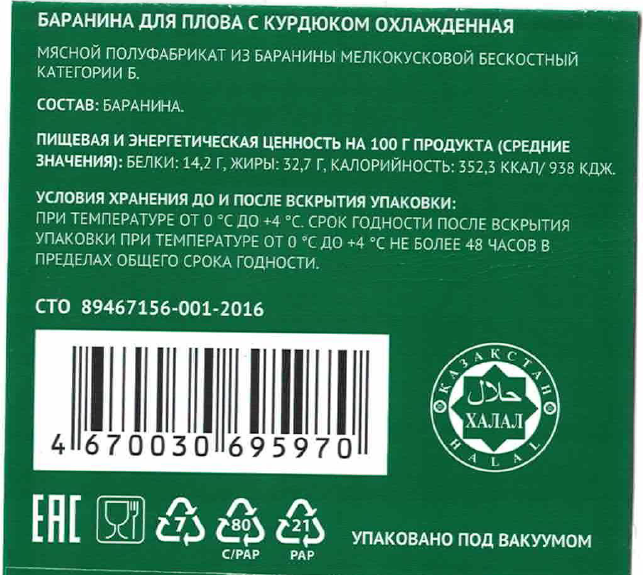 Баранина Мясо есть! для плова с курдюком охлажденная, 370г