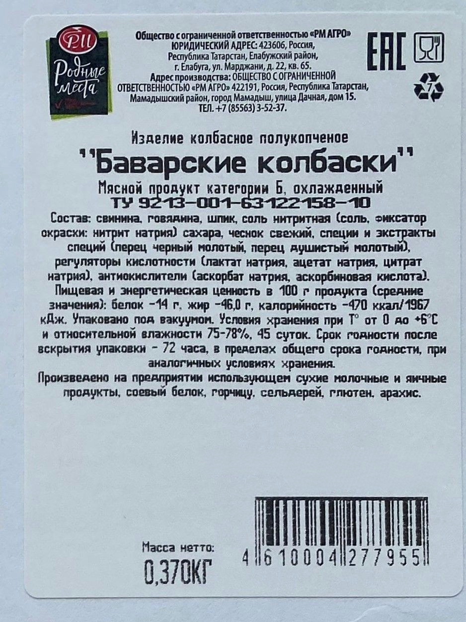 Свинина, говядина, шпик , соль нитритная (соль, фиксатор окраски: нитрит натрия), сахара, чеснок свежий, специи и экстракты специй (перец черный молотый, перец душистый молотый), регуляторы кислотности (лактат натрия, ацетат натрия, цитрат натрия), антиокислители (аскорбат натрия, аскорбиновая кислота).