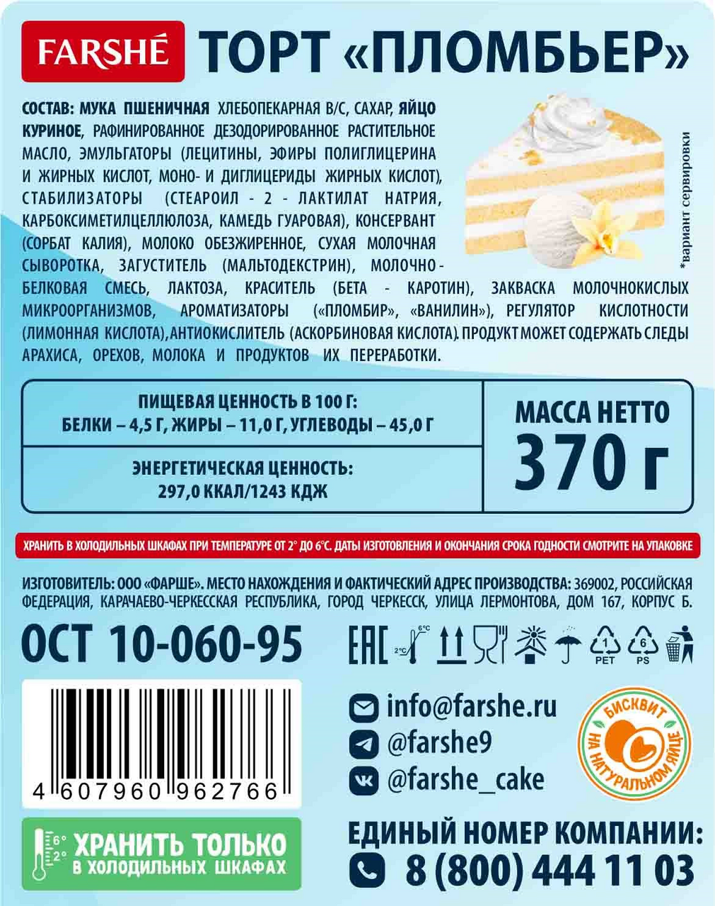 Мука пшеничная хлебопекарная в/с, сахар, яйцо куриное, рафинированное дезодорированное растительное масло, эмульгатор (лецитин, эфиры полиглицерина и жирных кислот, моно- и диглицериды жирных кислот), стабилизаторы (стеароил - 2 - лактилат натрия, карбоксиметилцеллюлоза, камедь гуаровая), консервант (сорбат калия), молоко обезжиренное, сухая молочная сыворотка, загуститель (мальтодекстрин), молочно-белковая смесь, лактоза, краситель (бета-каротин), закваска молочнокислых микроорганизмов, ароматизаторы (Пломбир, Ванилин), регулятор кислотности (лимонная кислота), антиокислитель (аскорбиновая кислота).