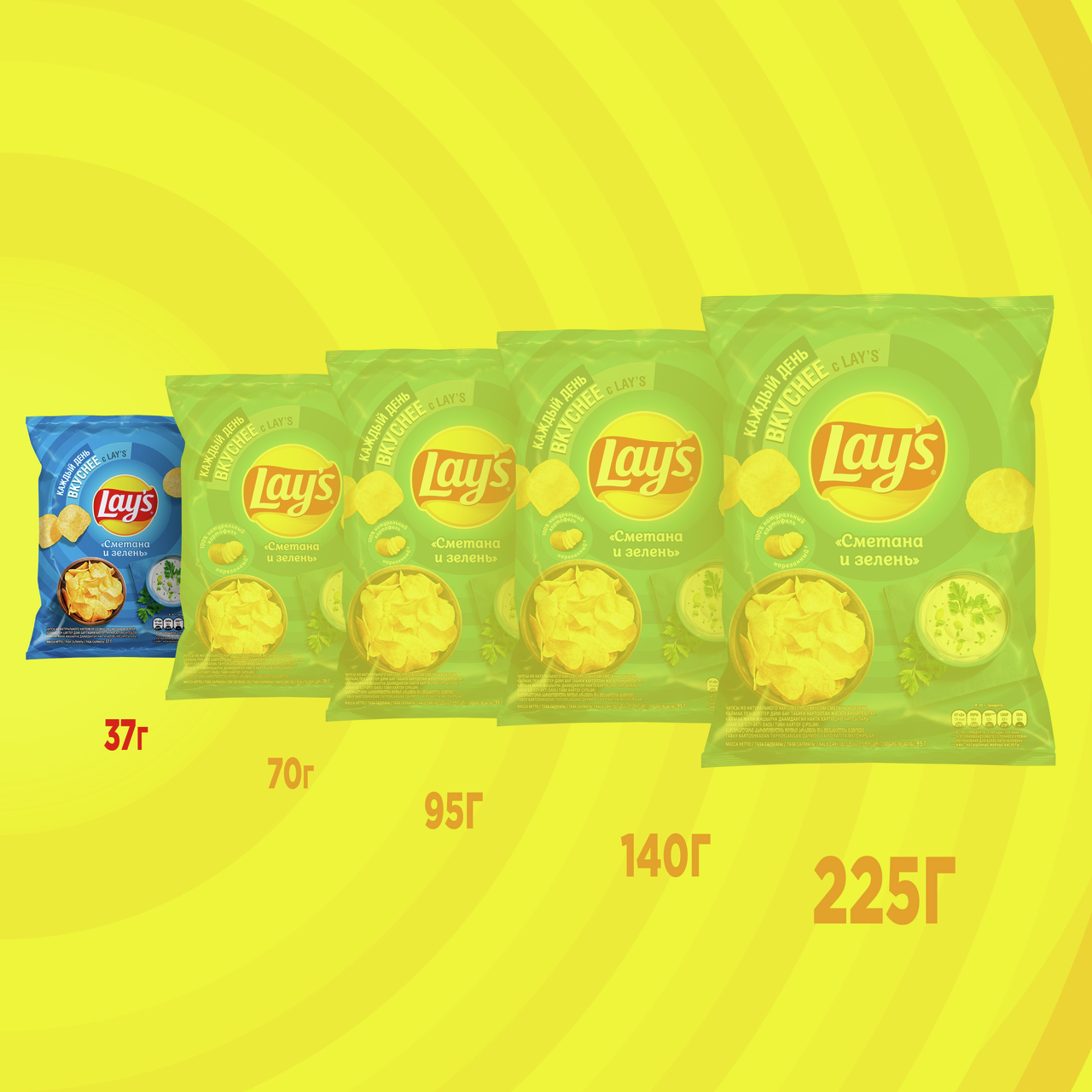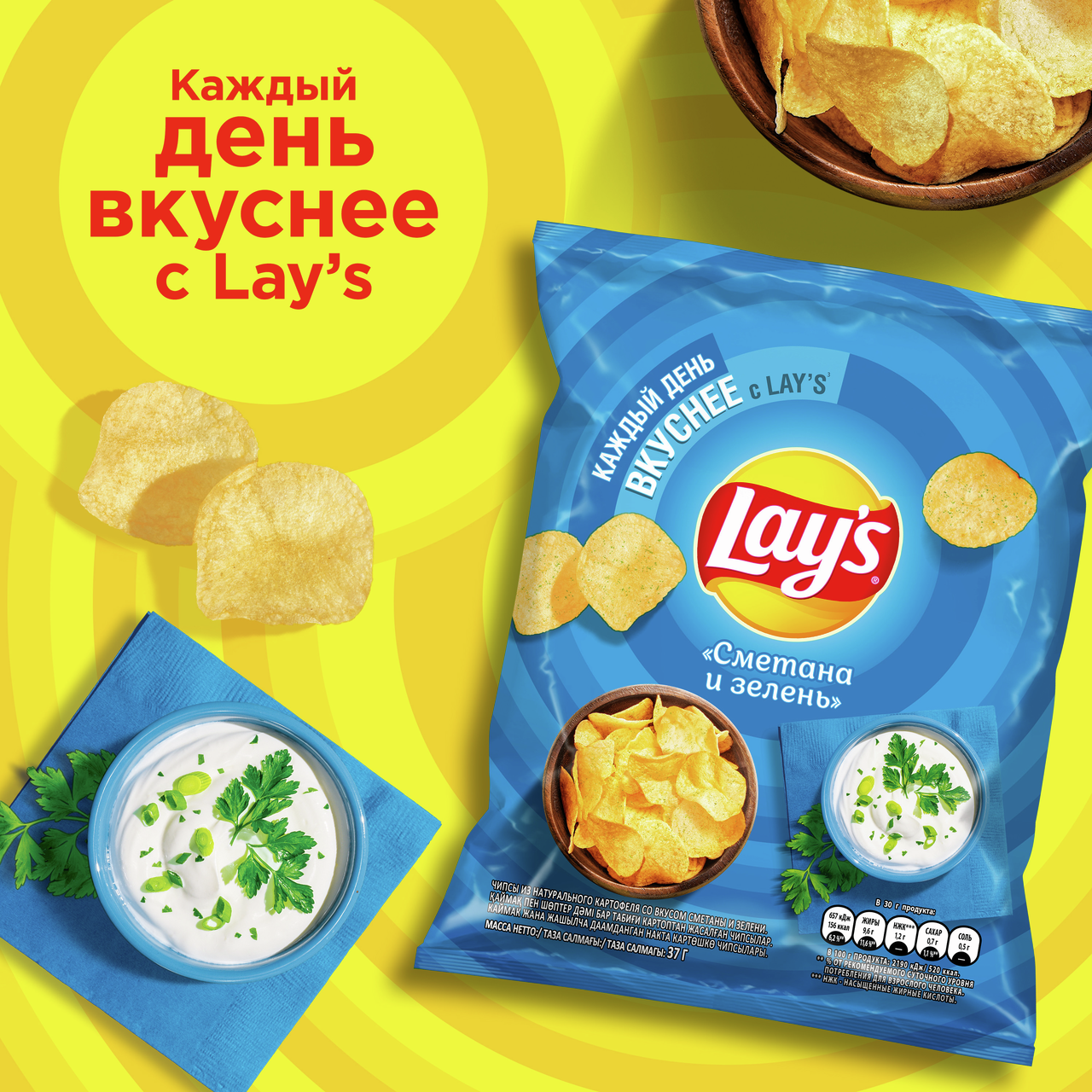 Чипсы Lay's сметана и зелень, 37 г с золотистой корочкой и приятным сливочно-пряным вкусом. Они хорошо сочетаются с острыми соусами. Создается интересное гастрономическое сочетание, которое понравится всем гостям. Подавать их можно в качестве закуски к слабоалкогольным напиткам в большой стеклянной посуде. Чипсы можно использовать и для эффектной сервировки овощных и мясных салатов и паштетов. В таком случае они получатся порционными. Это очень удобно — взял одну штучку и съел, не испачкав руки и посуду. Домочадцам понравится такой способ подачи. Продукт можно с удовольствием съесть при просмотре фильма или спортивного мероприятия. Чипсы исчезнут очень быстро, поэтому лучше держать про запас еще одну упаковку. Изделие подходит для быстрого перекуса, поэтому пачку можно взять с собой в путешествие или на прогулку. Чипсы производятся из отборного плотного натурального картофеля. Продаются в пластиковом пакете, сохраняющем вкусовые и потребительские свойства. Он не допускает попадания влаги внутрь и повреждения целостности продукта.