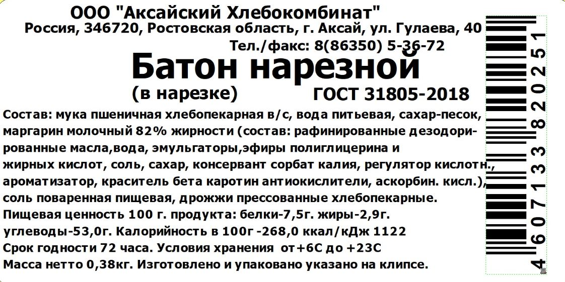 Традиционный батон из пшеничной муки высшего сорта. Аппетитная, золотистая корочка и классический вкус. Идеальная основа для бутербродов.