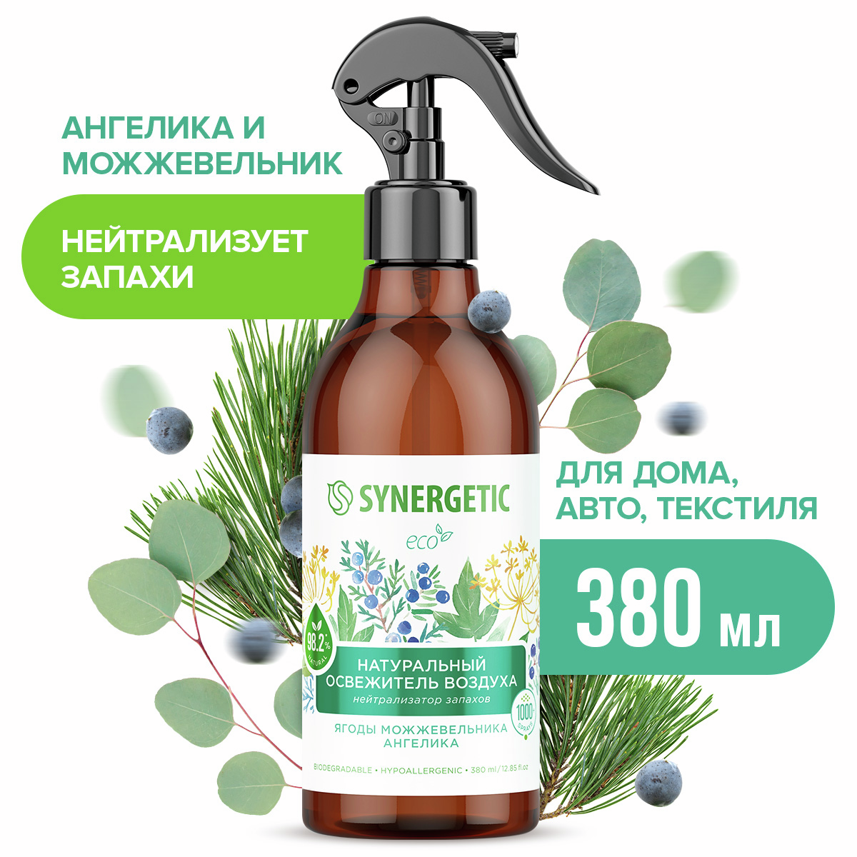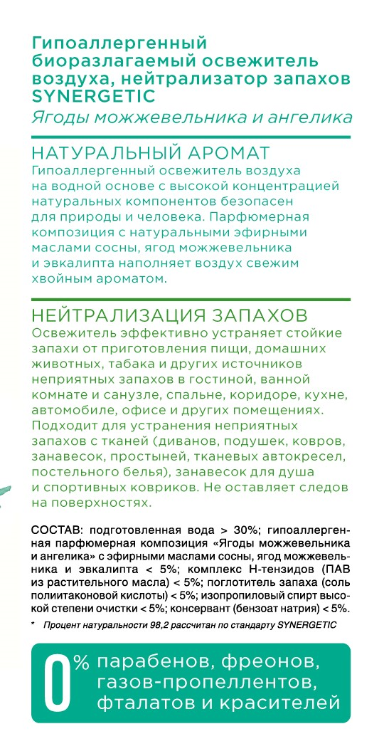 Освежитель воздуха Synergetic можжевельник и ангелика, 380мл