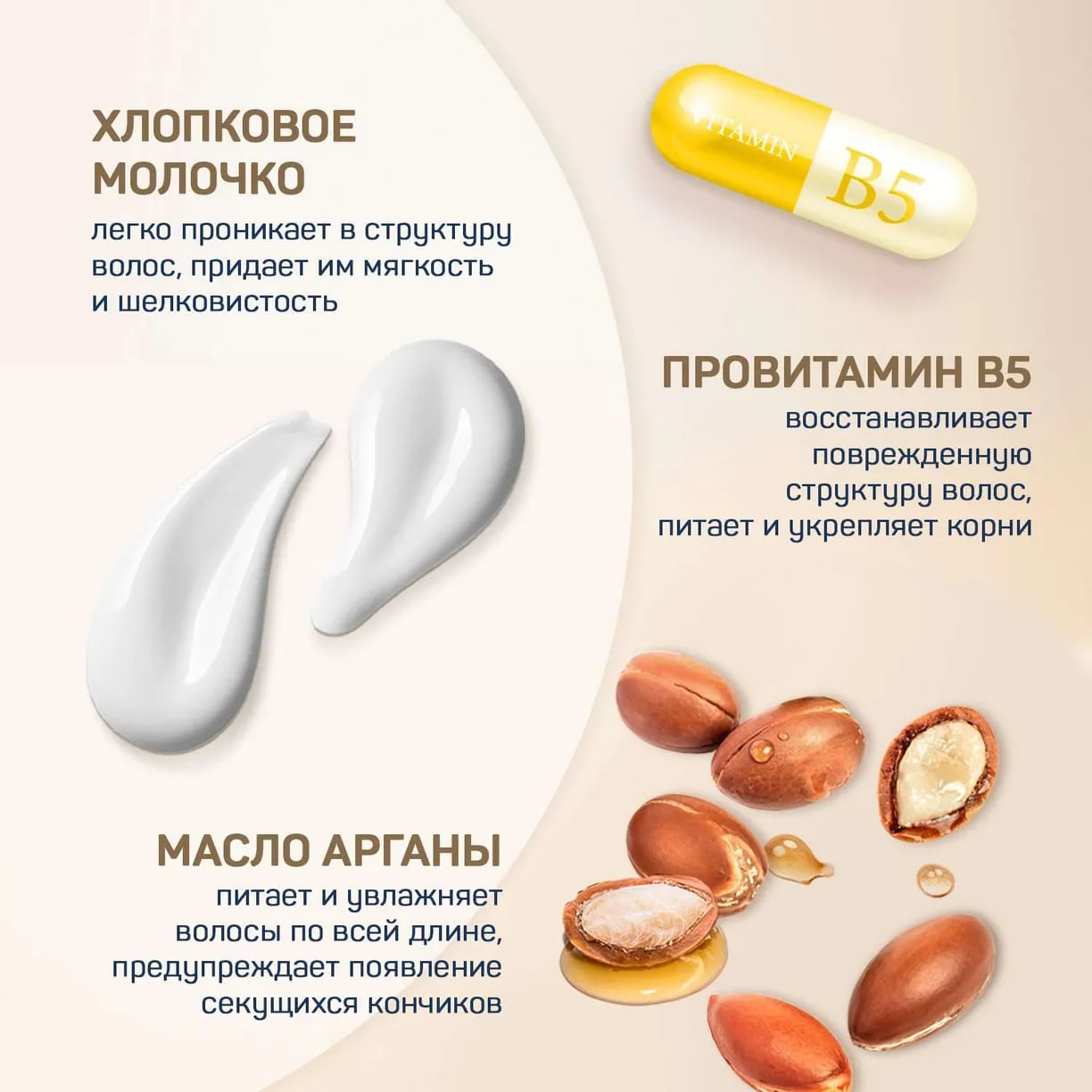 Предназначен для поврежденных и ослабленных волос, нуждающихся в интенсивном уходе. Бережно очищает кожу головы, питает и восстанавливает волосы по всей длине. Масло арганы увлажняет, смягчает и питает каждый волосок, предупреждает появление секущихся кончиков. Провитамин В5 восстанавливает поврежденную структуру волос, глубоко питает и разглаживает их. Хлопковое молочко легко проникает в структуру волос, нежно ухаживает за ними и придает особую мягкость и блеск. Благодаря активной формуле тройного ухода волосы восстанавливаются и приобретают здоровый внешний вид при его регулярном использовании.