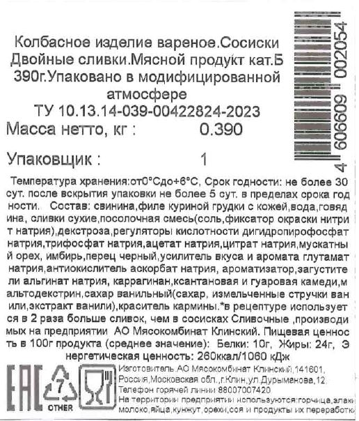 Сосиски Клинский двойные сливки, 390г