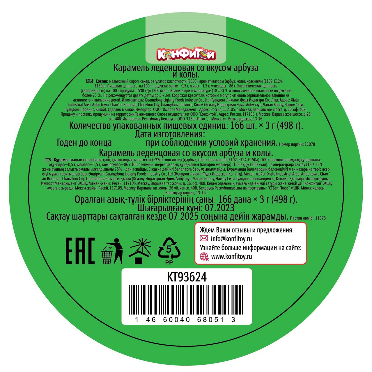 Карамель Конфитой Взрыв мозга микс вкусов кола, арбуз, 3г х 166 шт