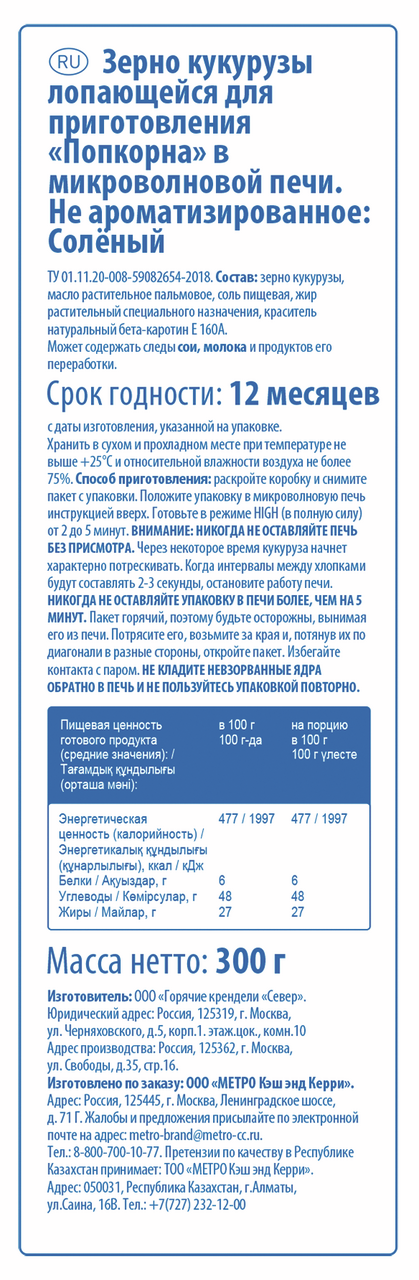 Цельнозерновая кукуруза aro - набор из 3х пачек в одной упаковке. В нашем продукте мы используем зерно самого высшего качества, которое позволяет приготовить настоящее лакомство в микроволновой печи! В попкорне содержится клетчатка, полезность которой неоспорима. Горячий вкусный попкорн - прекрасный перекус и отличное дополнение к кинофильму!