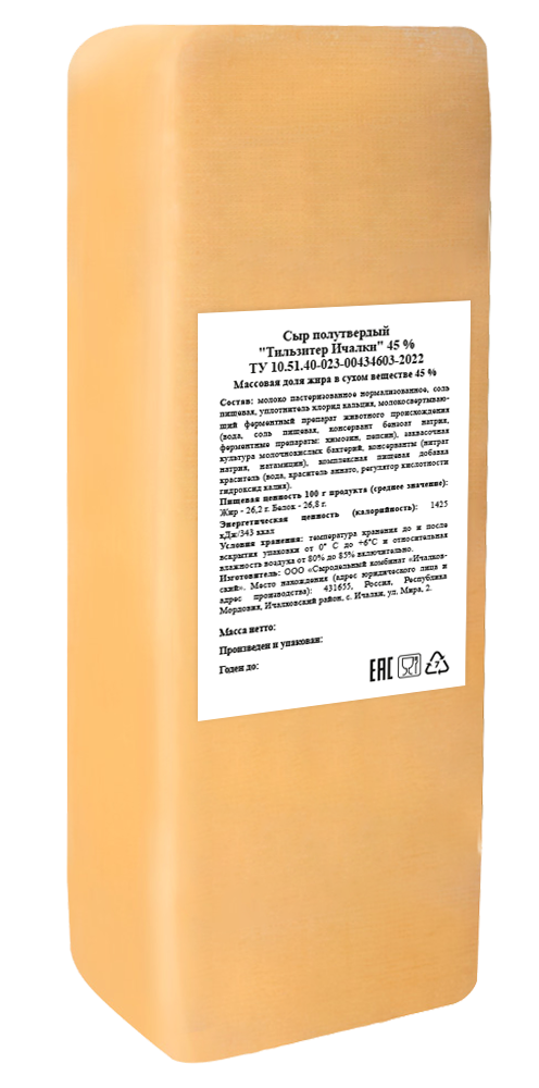 Сыр Ичалки Тильзитер 45%, ~3кг