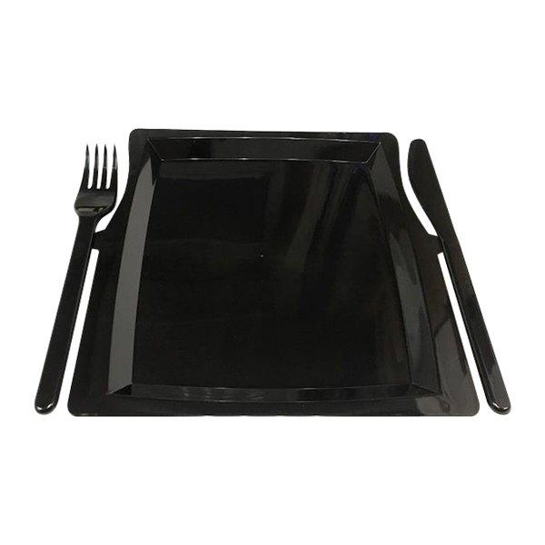 Набор одноразовой посуды Мистерия тарелка + вилка + нож пластиковый черный, 3шт