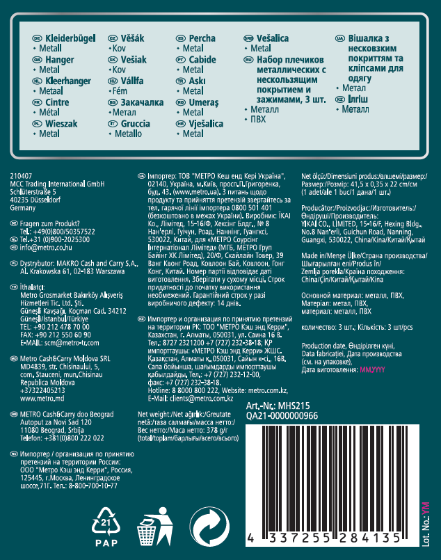 METRO PROFESSIONAL Плечики нескользкие с зажимом 41,5см, 3шт