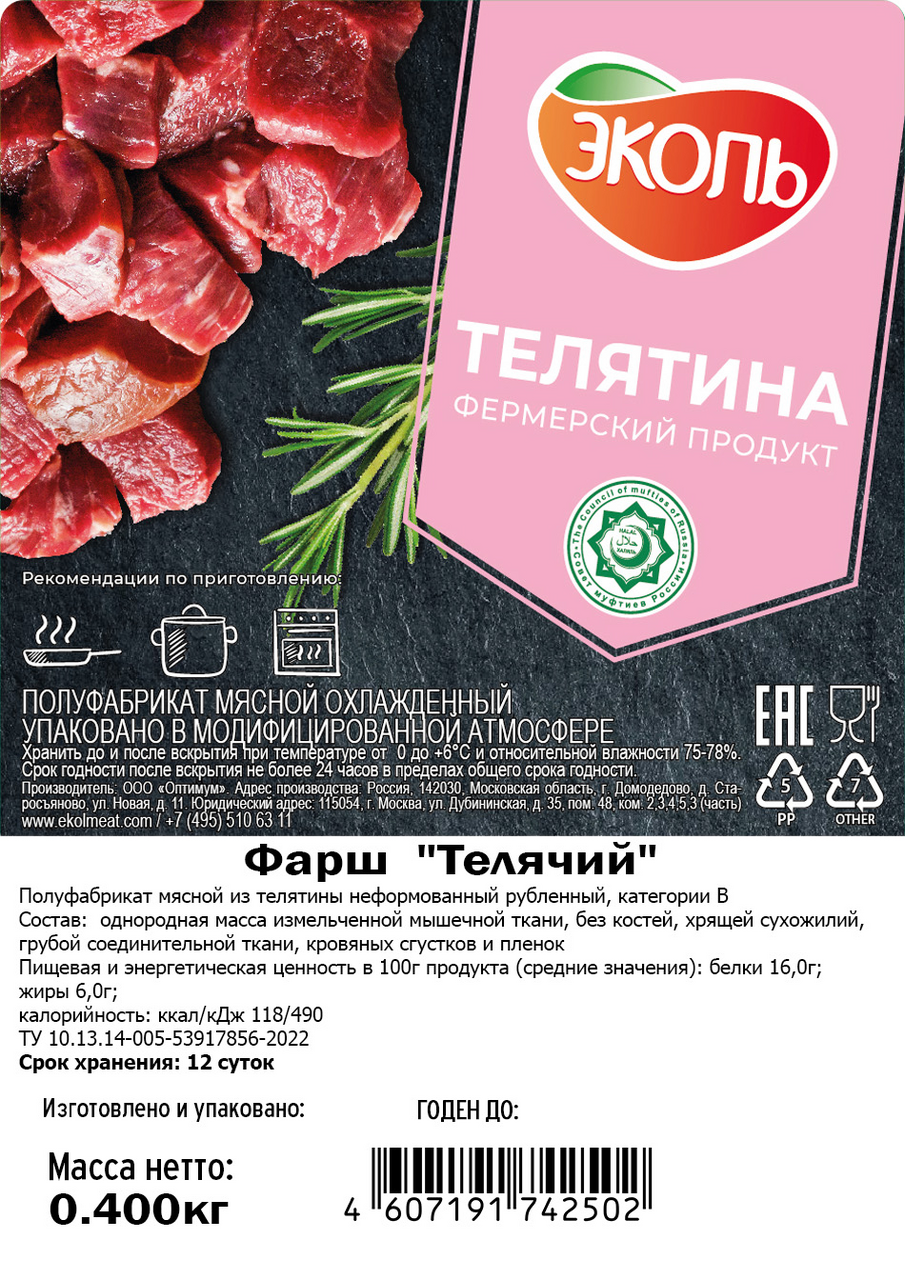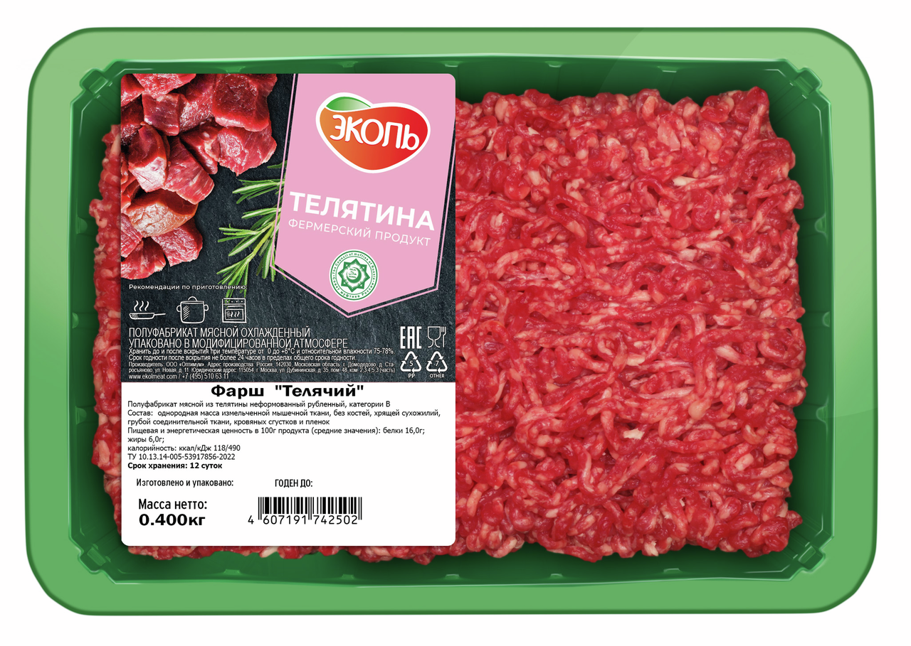 Фарш телячий Эколь Халяль охлажденный, 400г